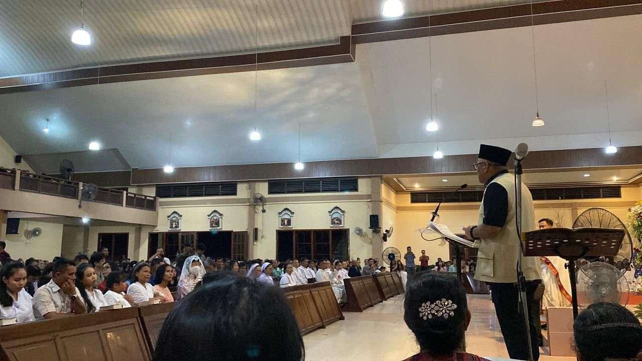 Sementera itu Walikota Tanjungpinang Lis Darmansyah meninjau sekaligus melihat langsung pelaksanaan ibadah Natal di Gereja Katolik Kristur Raja Tanjungpiang, Rabu (24/12/2025).