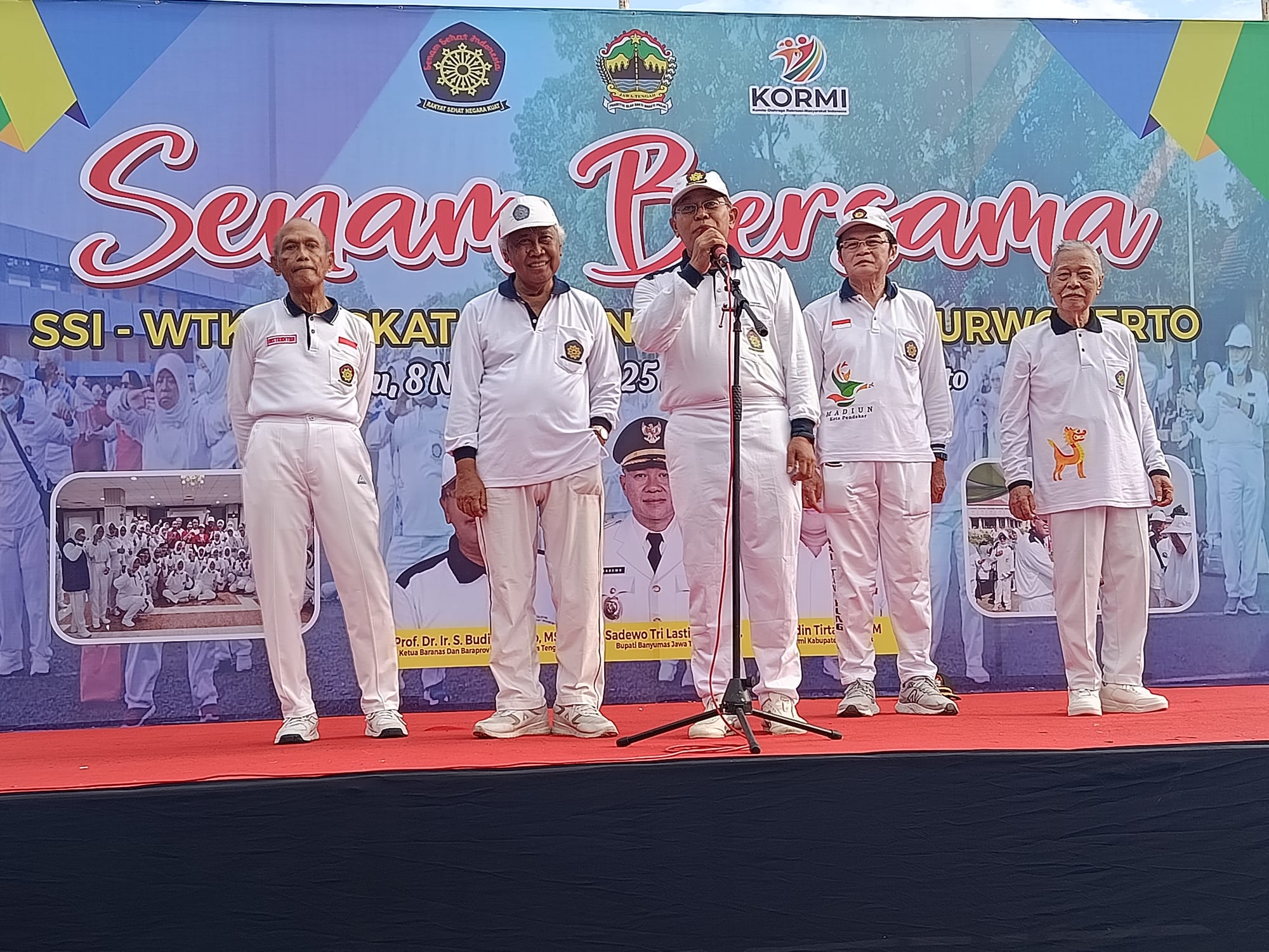 Spektroom — Sebanyak 4.468 pegiat Senam Sehat Indonesia (SSI) Wai Tan Kung dari 19 kabupaten di Jawa Tengah mengikuti kegiatan senam bersama yang digelar di GOR Satria, Purwokerto, pada Sabtu pagi (8/11/2025).