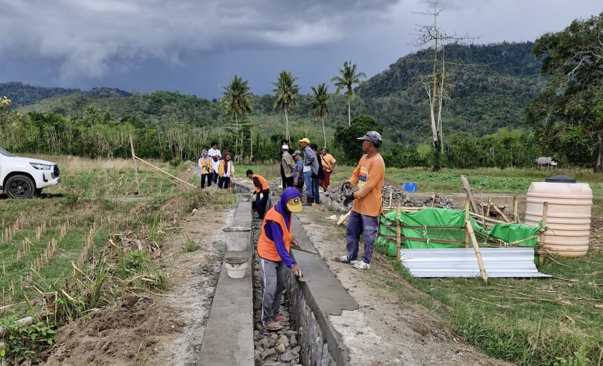 “Lebih dari 75 persen dari total 3.074 jiwa warga kami adalah petani, dengan lahan pertanian sekitar 300 hektare. Dulu setiap musim tanam kami harus gotong royong memperbaiki saluran tanah yang sering jebol. Sekarang saluran sudah permanen dengan pasangan batu, jauh lebih terjamin,” tutur Syafruddin.