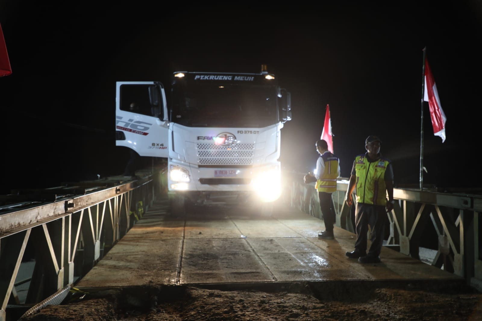 Proses pembangunan jembatan darurat ini merupakan hasil kolaborasi cepat antara pemerintah pusat, BUMN, dan kontraktor lokal. PT Adhi Karya (Persero) Tbk bertindak sebagai pelaksana utama dengan dukungan dari PT Krueng Meuh, serta pendampingan penuh dari Direktorat Jenderal Bina Marga Kementrian PU dan BPJN.