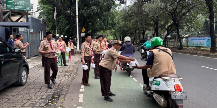 Jakarta-Spektroom: Dalam rangka menyemarakkan bulan suci Ramadhan 14247 Hijriah Pramuka satuan komunitas Sekawan persada Nusantara DKI Jakarta ( Sako SPN DKI Jakarta ) menggelar aksi sosial berbagi takjil kepada masyarakat.