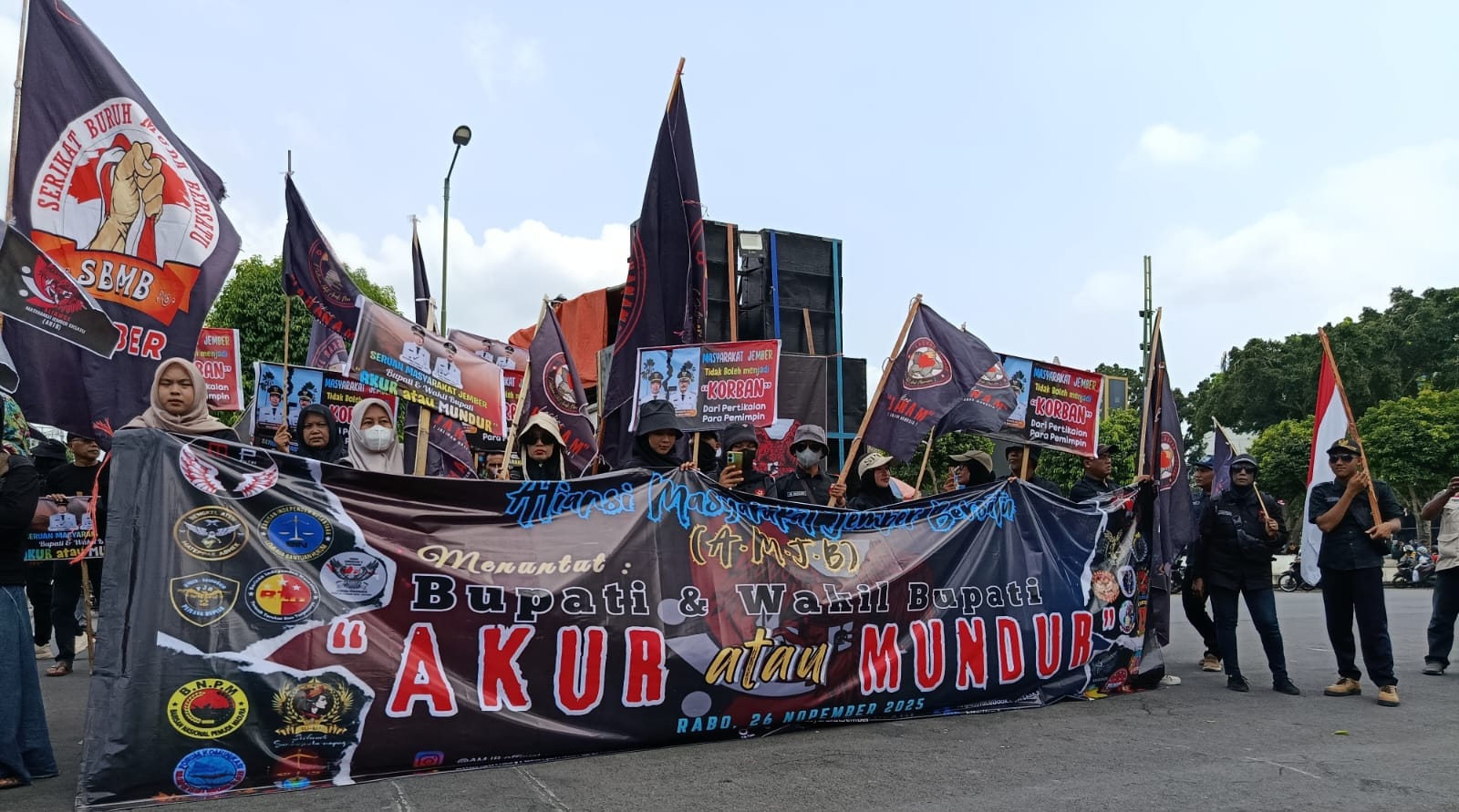 Spektroom - Aliansi Masyarakat Jember Bersatu (AMJB) menyampaikan aspirasi melalui unjuk rasa di depan kantor Bupati Jember pada Rabu (26/11/2025) Puluhan aktivis Aliansi Masyarakat Jember Bersatu (AMJB) yang terdiri dari berbagai Organisasi masyarakat, komunitas, dan elemen sipil Jember, turun ke jalan sebagai bentuk kepedulian terhadap semakin memburuknya disharmoni antara Bupati dan Wakil Bupati Jember yang berdampak langsung pada jalannya roda pemerintahan dan pelayanan publik. Laskar Jahanam Jember, dalam orasi yang disampaikan Korlap Wahyu, menyatakan, disharmoni yang terus berlangsung, telah memunculkan berbagai persoalan di lapangan, diantaranya pembangunan yang terhambat dan tidak merata, prioritas pelayanan publik yang tersendat, potensi penyalahgunaan dan ketidakefektifan anggaran, munculnya kubu-kubu pro dan kontra yang membuat tensi sosial meningkat