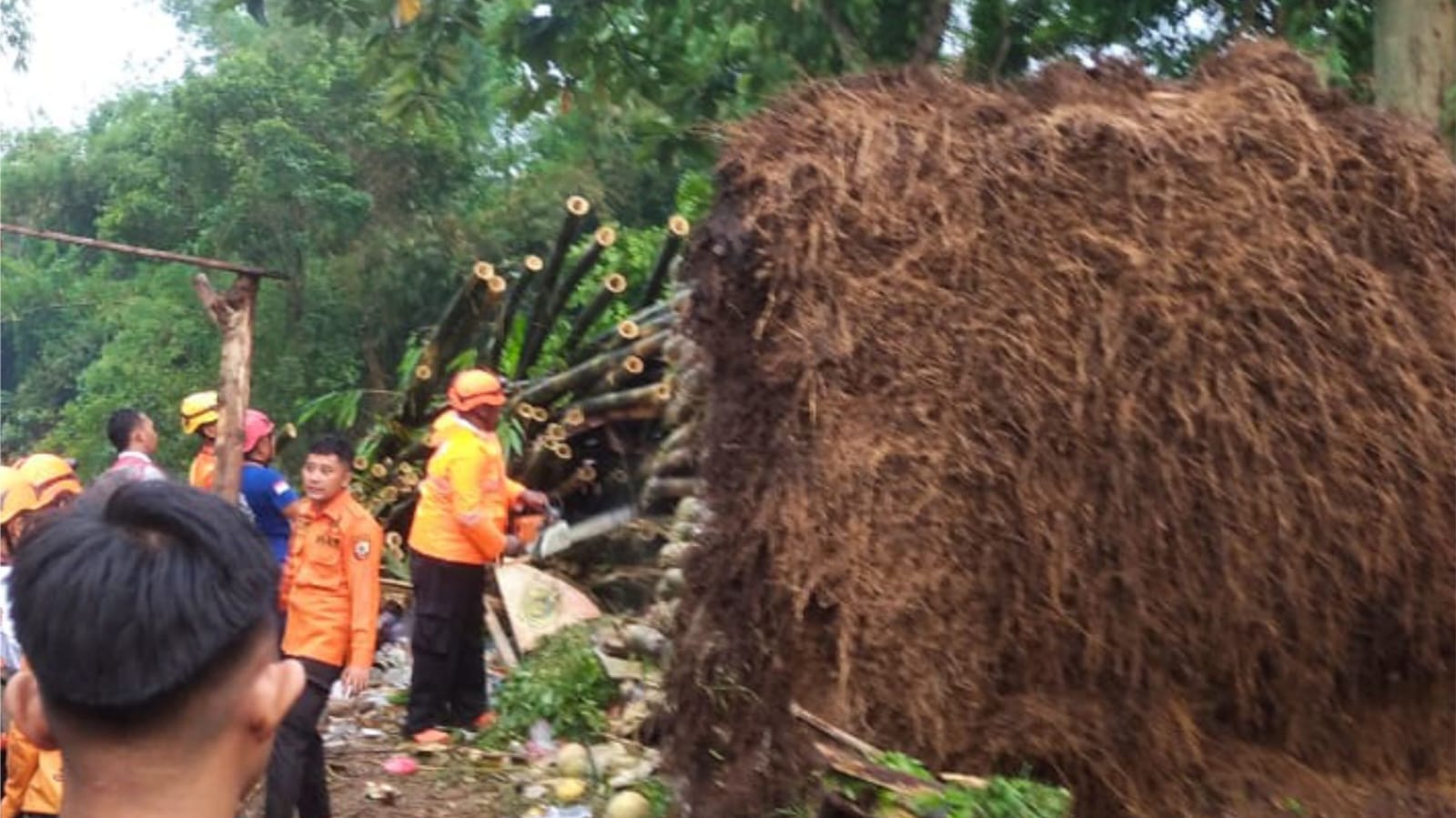 “Saat kejadian, korban sedang berada di sekitar kandang untuk memberi makan ternak, namun tiba-tiba angin kencang datang disertai hujan lebat hingga pohon bambu di belakang kandang tumbang dan menimpa mereka,”paparnya.