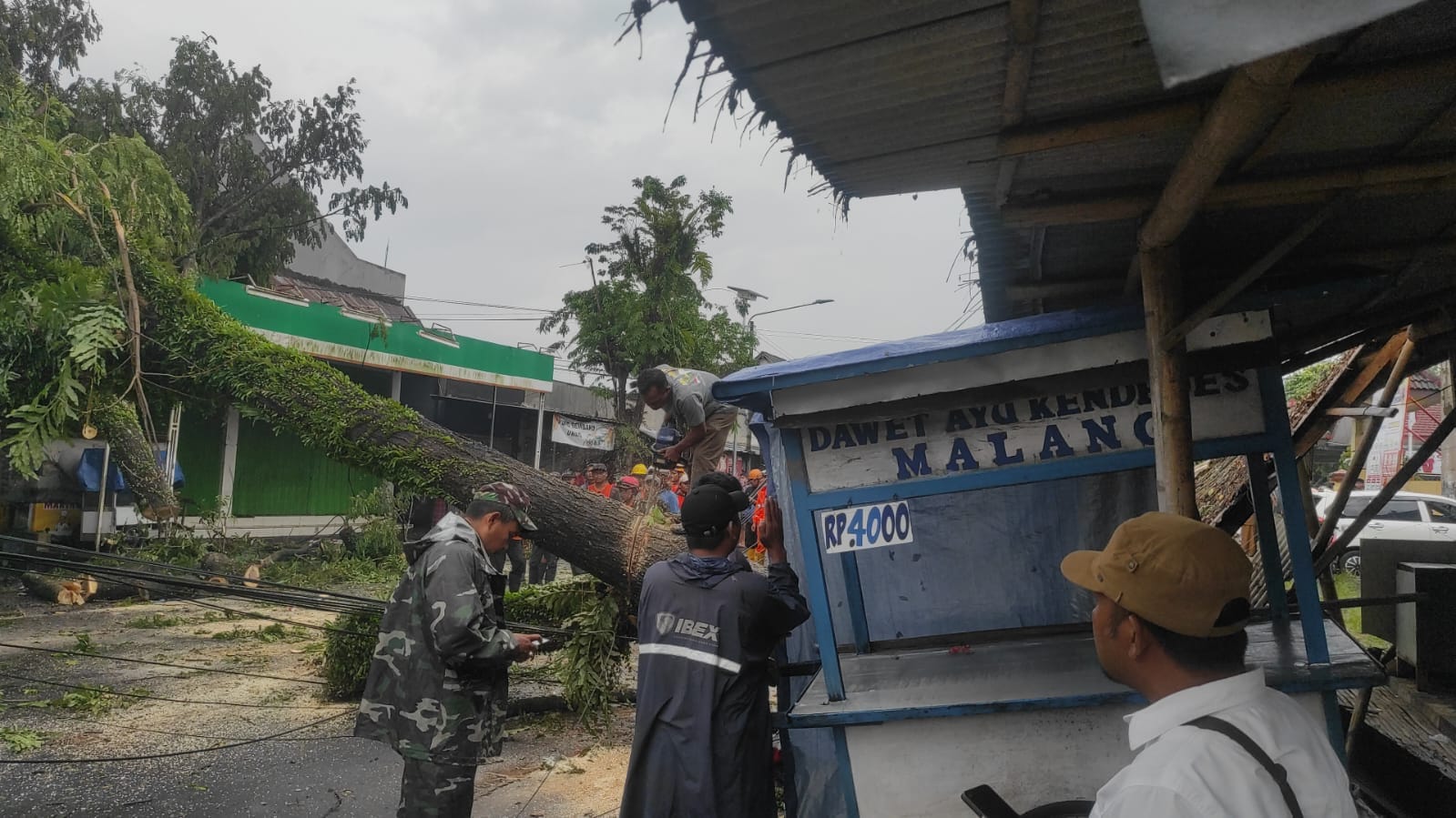 Kejadian tersebut mengakibatkan sejumlah pohon tumbang menutup badan jalan, menimpa jaringan listrik, serta berdampak langsung pada aktivitas masyarakat.