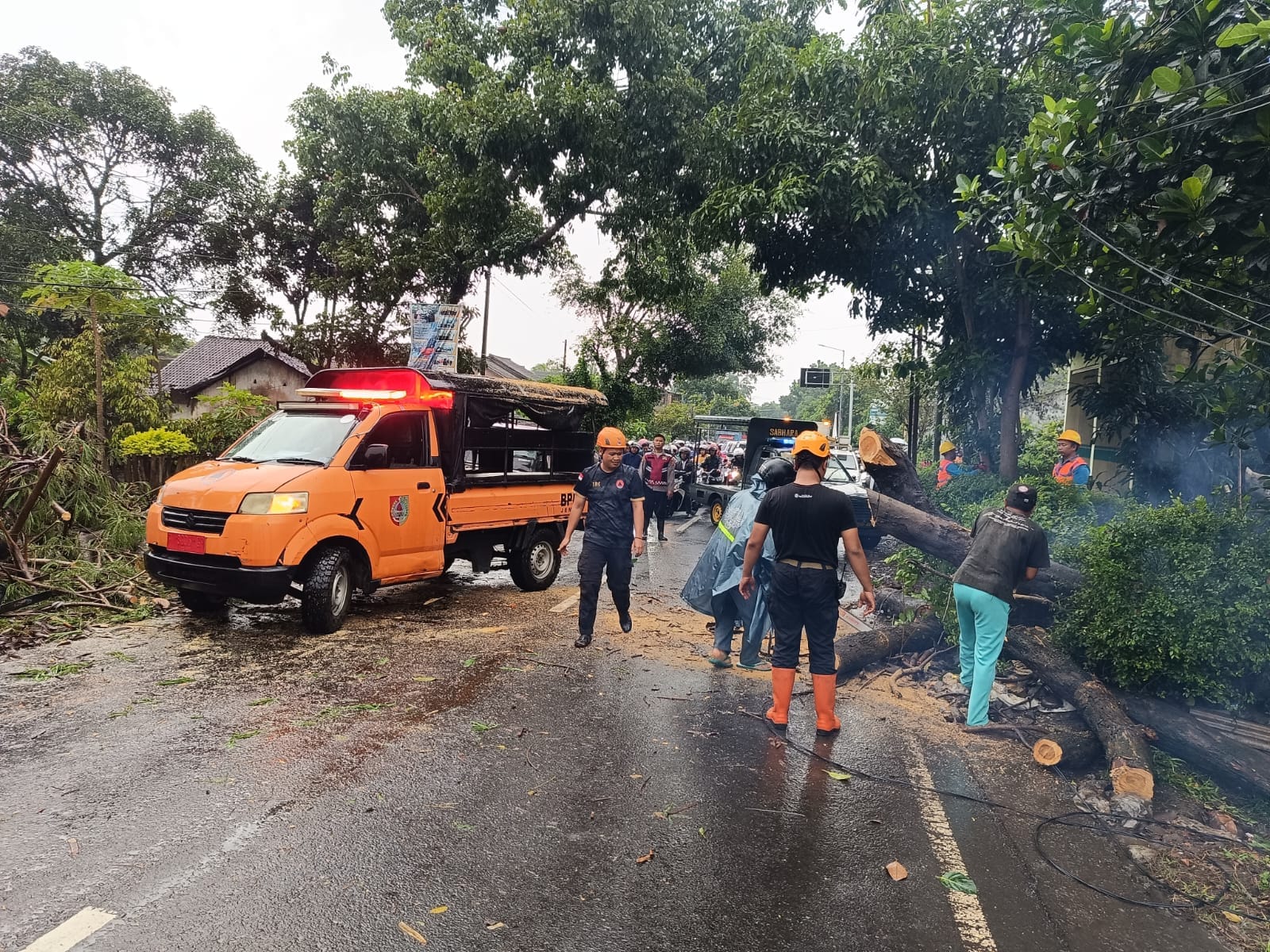 “Cuaca ekstrem menyebabkan beberapa pohon berukuran besar tidak mampu menahan terpaan angin sehingga tumbang ke arah jalan,” ungkapnya