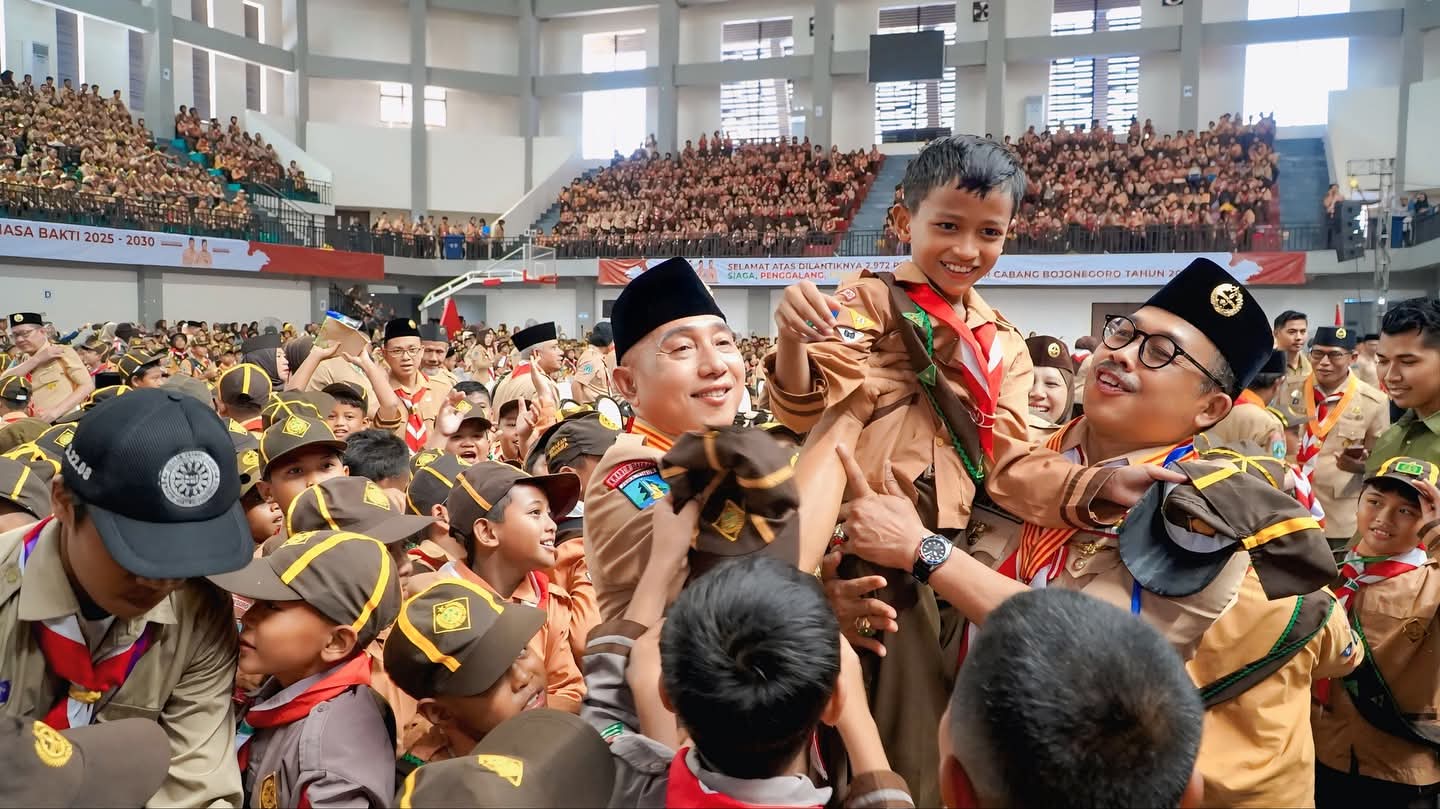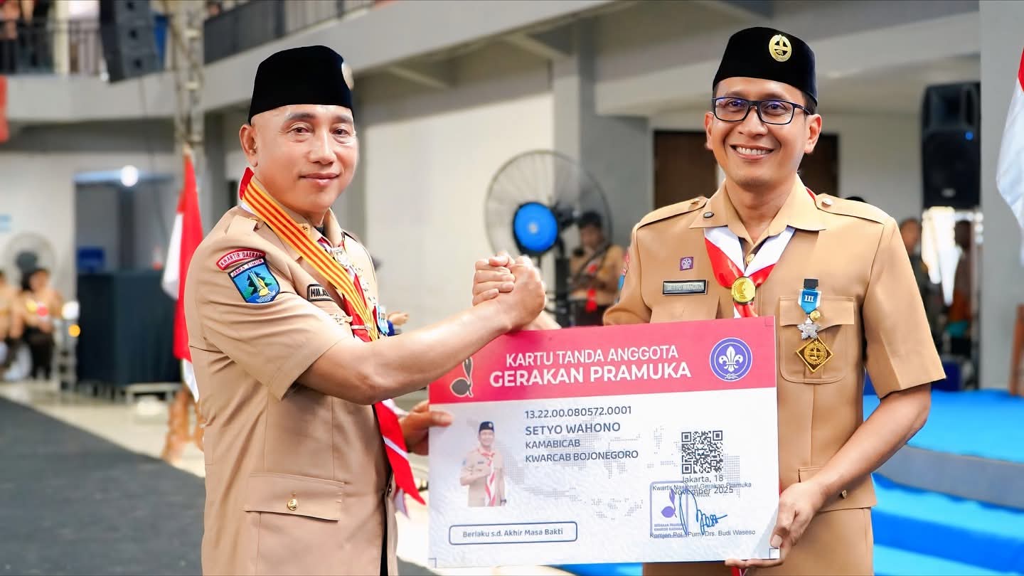 Spektroom - Ketua Kwarda Gerakan Pramuka Jawa Timur, Arum Sabil melantik para pemimpin daerah yang akan menjadi nakhoda pembimbing dan pengarah Gerakan Pramuka Bojonegoro, di Gedung Olahraga (GOR) Bojonegoro, pada Kamis (20/11/2025)