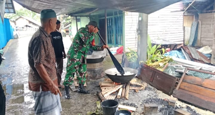 Selain melakukan pengamanan, personel Kodim 1002/HST juga turut membantu dalam menyiapkan makanan bagi para jamaah.