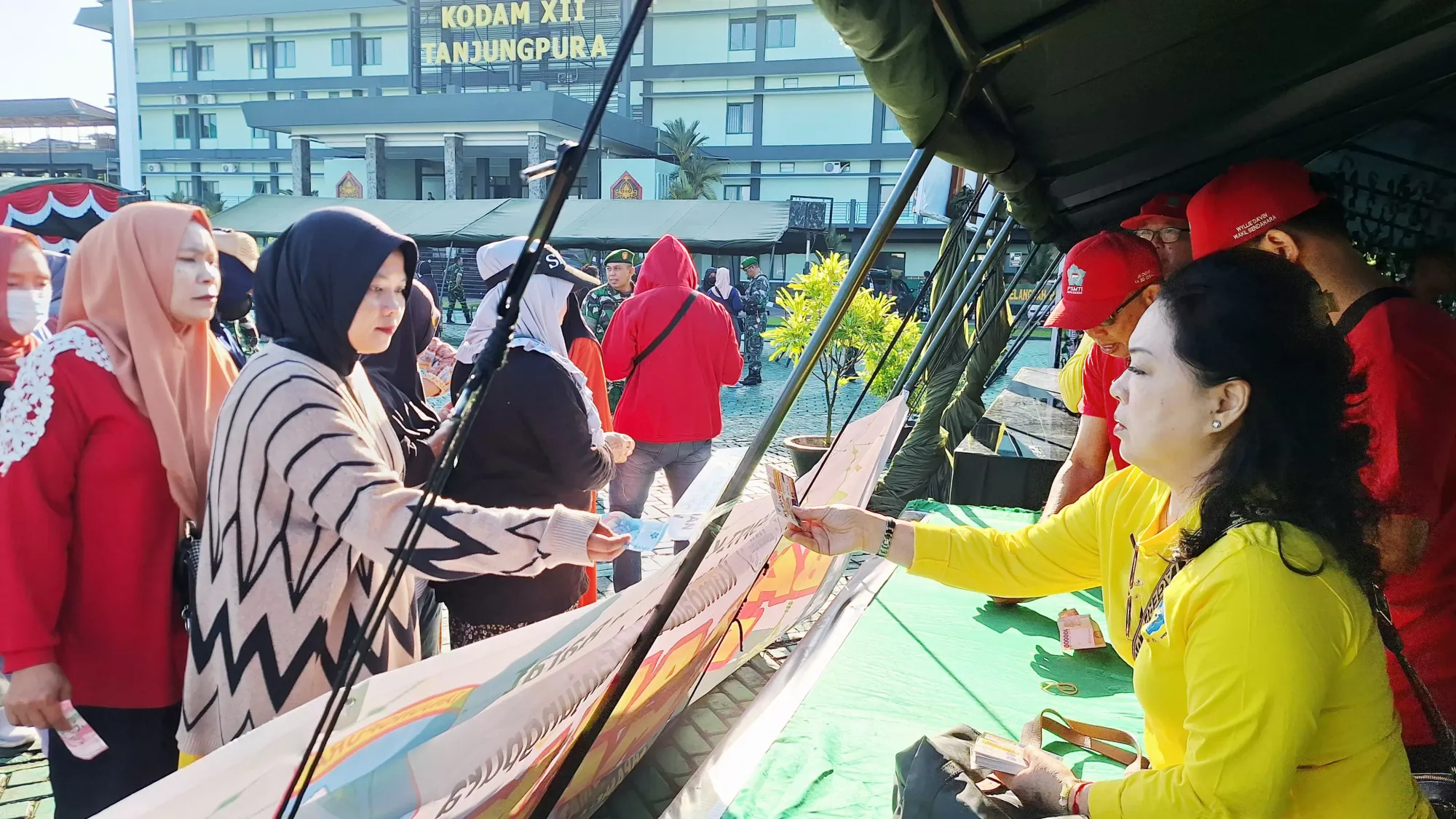 “Pada hari ini dilaksanakan kegiatan bazar murah Ramadan yang bekerja sama dengan Kodam XII/Tanjungpura.