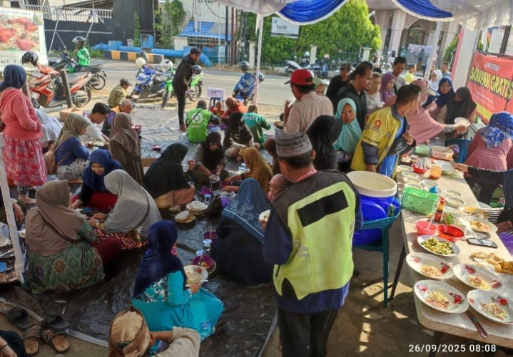 Namun, di balik keberkahan pagi ini, masih ada kisah yang menyentuh. Pada pukul 08.30 WITA, ketika porsi sarapan telah habis, sejumlah warga masih berdatangan. Di antaranya ada seorang Ibu penjual sayur dan beberapa abang ojol yang baru selesai mengantre orderan.