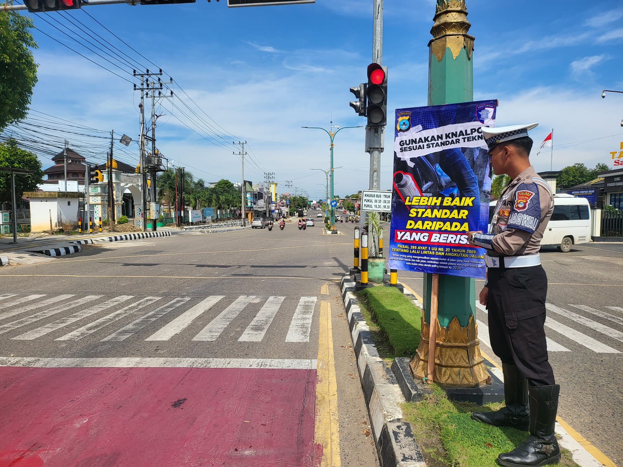 Beri Imbauan, Satlantas Tabalong Pasang Spanduk Larangan Knalpot Yang Tidak Sesuai Standar Pabrik