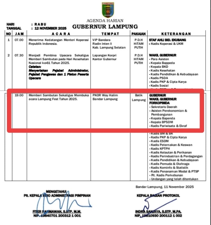 Spektroom - Gubernur Lampung Rahmat Mirzani Djauzal Malam nanti Pukul 19.00 WIB diagendakan akan membuka Lampung Fest 2025, di Pusat Kegiatan Olah Raga (PKOR) Bandarlampung, Rabu (12/11/2025).