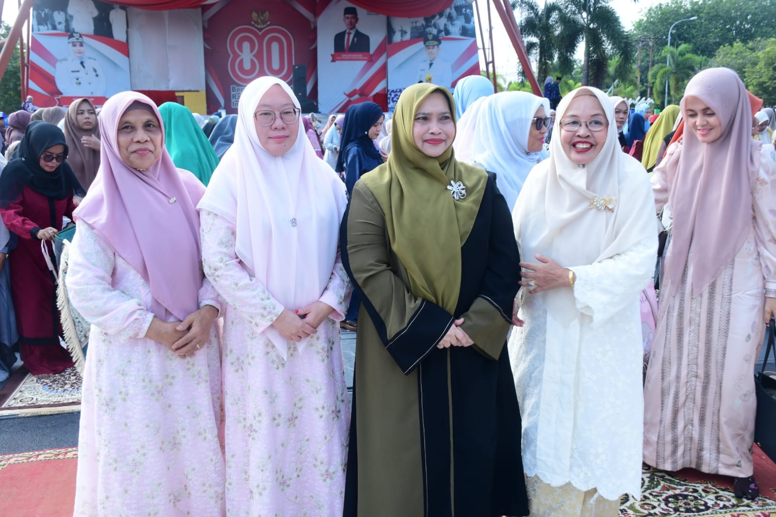 Bengkalis-Spektroom : Bupati Kasmarni didampingi Suami Amril Mukminin yang juga Bupati Bengkalis ke-14 dan keluarga melaksanakan Shalat Idul Fitri 1447 H di Lapangan Tugu Bengkalis. Sabtu, (21/3/2026).