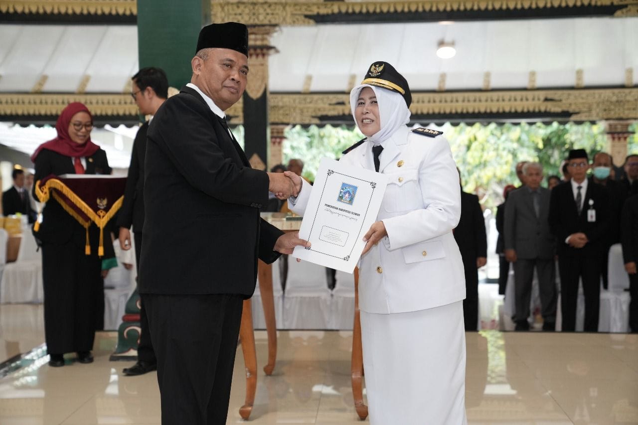 Pelantikan diawali dengan pengambilan sumpah jabatan, kemudian dilanjutkan dengan penyerahan Surat Keputusan (SK) oleh Bupati Sleman yang didampingi jajaran Forkopimda Kabupaten Sleman.