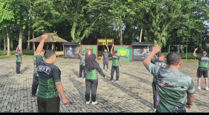 Spektroom – Sebagai upaya menjaga kebugaran dan kesehatan jasmani Prajurit, Komandan Kodim 1002/Hulu Sungai Tengah (HST) Letkol Inf Ardiansyah Okta Putra memimpin langsung kegiatan olahraga bersama anggota Makodim 1002/HST, Kalsel, Selasa (6/1/2026).