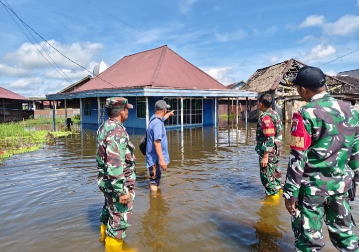 Spektroom - Koramil 1002-08/Labuan Amas Utara melaksanakan aksi pemantauan banjir yang melanda Desa Sungai Buluh dan Mantaas, Kecamatan Labuan Amas Utara Banua, Kabupaten Hulu Sungai Tengah, HST, Kalsel, Jum'at (2/1/2026). Kegiatan ini dilakukan sebagai langkah antisipasi dan pemantauan kondisi wilayah guna menjaga keselamatan masyarakat.