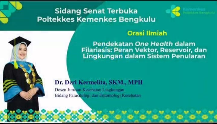 Dies Natalis Poltekkes Kemenkes Bengkulu diawali dengan Orasi ilmiah oleh DR. Deri Kermelita, SKM., MPH. berjudul Pendekatan One Health dalam Filariasis: Peran Vektor, Reservoir, dan Lingkungan dalam Sistem Penularan.
