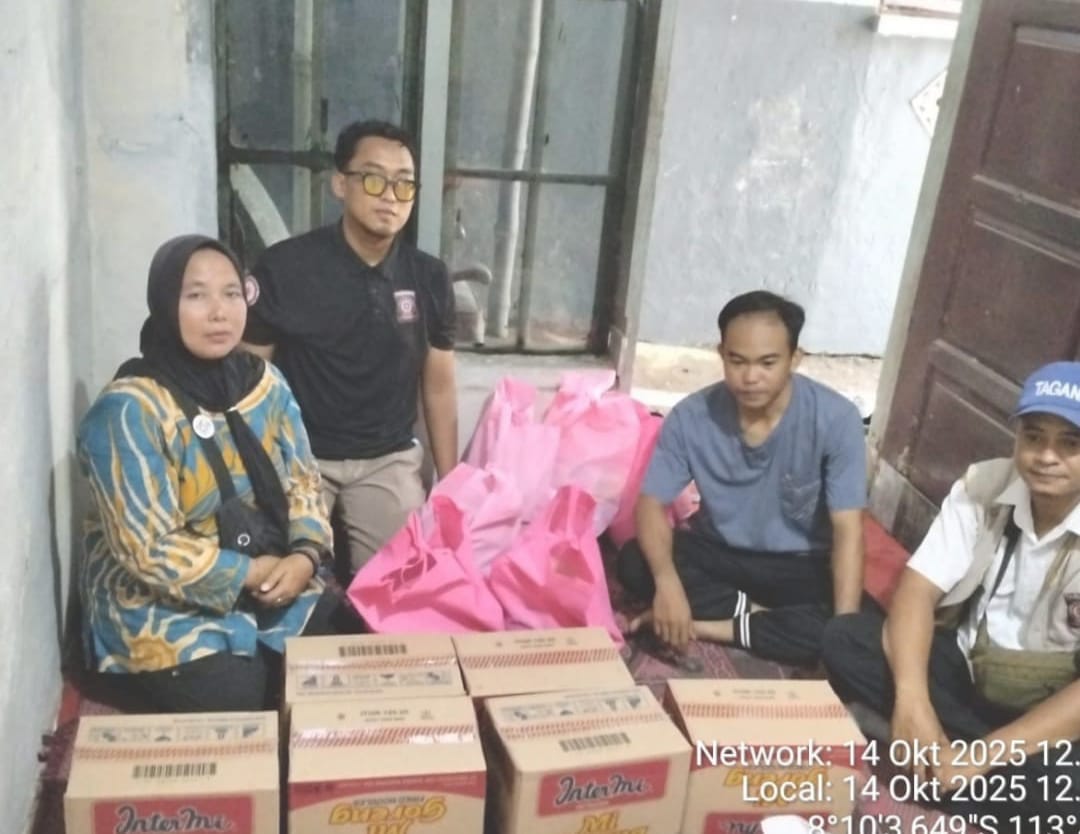 “Tak lama berselang, petugas Dinsos tiba di lokasi, membawa bantuan berupa sembako, perlengkapan kebutuhan harian, serta santunan duka,”ungkapnya.
