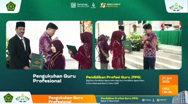 IniSpektroom - Pengukuhan Guru Profesional Pendidikan Profesi Guru (PPG) Batch 3 Fakultas Tarbiyah & Keguruan Lembaga Pendidikan Tinggi Keagamaan (LPTK) Universitas Islam Negeri (UIN) Raden Intan Lampung, berlangsung di Kampus UIN di Bandarlampung, Rabu (21/1/2026).