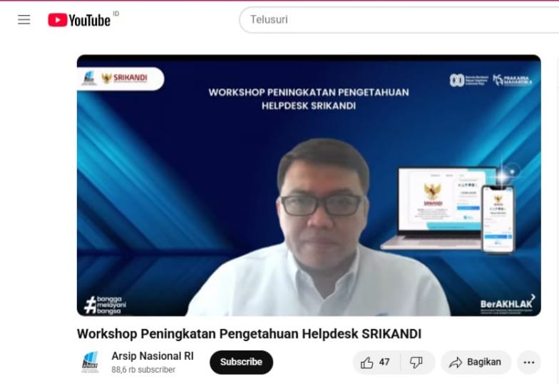 Demikian disampaikan Direktur Tehnologi informasi Kearsipan ANRI Dipo Winarto pada Virtual Workshop Peningkatan Pengetahuan Helpdesk SRIKANDI, Selasa (7/10/2025).