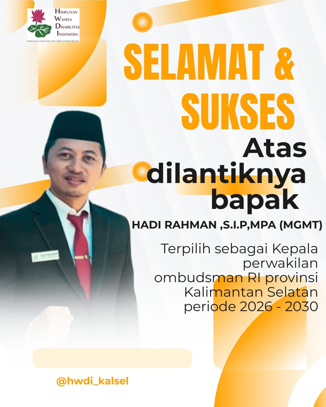 Spektroom - Rahman, S.I.P., MPA kembali dilantik sebagai Kepala Perwakilan Ombudsman Republik Indonesia Provinsi Kalimantan Selatan untuk masa jabatan 2026–2030.