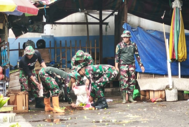 Hari Juang TNI-AD dan HUT Korem 101/Antasari, Kodim 1002/HST Laksanakan Karya Bakti di Pasar Kramat