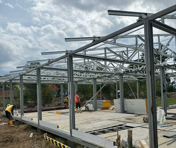Dari sisi teknis, huntara dibangun menggunakan sistem bangunan modular dengan struktur rangka baja ringan yang dirancang kuat, cepat dibangun, dan tetap memberikan kenyamanan bagi penghuni. Tahapan pekerjaan meliputi pembangunan pondasi, pemasangan rangka modular, dinding dan atap baja ringan, hingga pekerjaan mekanikal, elektrikal, dan plumbing (MEP).