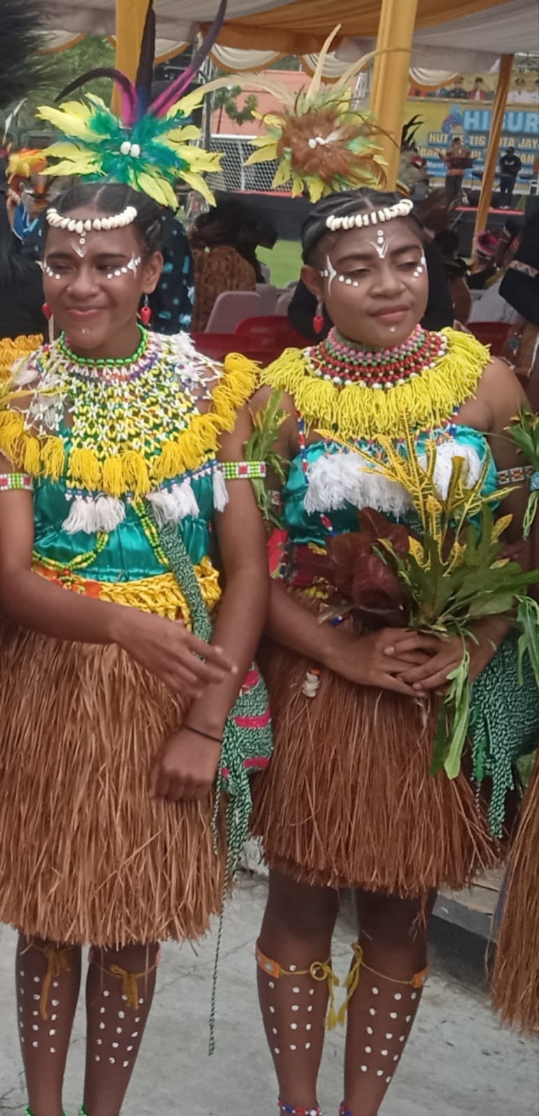 Dua pelajar SMKN Kota Jayapura, Ike dan Ata, mengaku senang dapat mengikuti langsung peringatan hari jadi kota mereka.