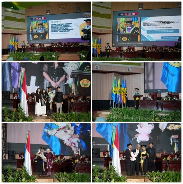 Giliran berikutnya diberikan kepada dua guru besar asal FEB, diawali oleh Prof. Elok Sri Utami. Melalui orasi ilmiah berjudul “Transformasi Keuangan Berkelanjutan: Jalan Baru Menuju Bisnis Tangguh dan Bertanggungjawab”. Prof. Elok menekankan perubahan paradigma bisnis yang semula hanya mencari profit jangka pendek, berubah menjadi tujuan keberlanjutan untuk bertahan dalam jangka panjang, dan memberi nilai tambah bagi seluruh pemangku kepentingan.