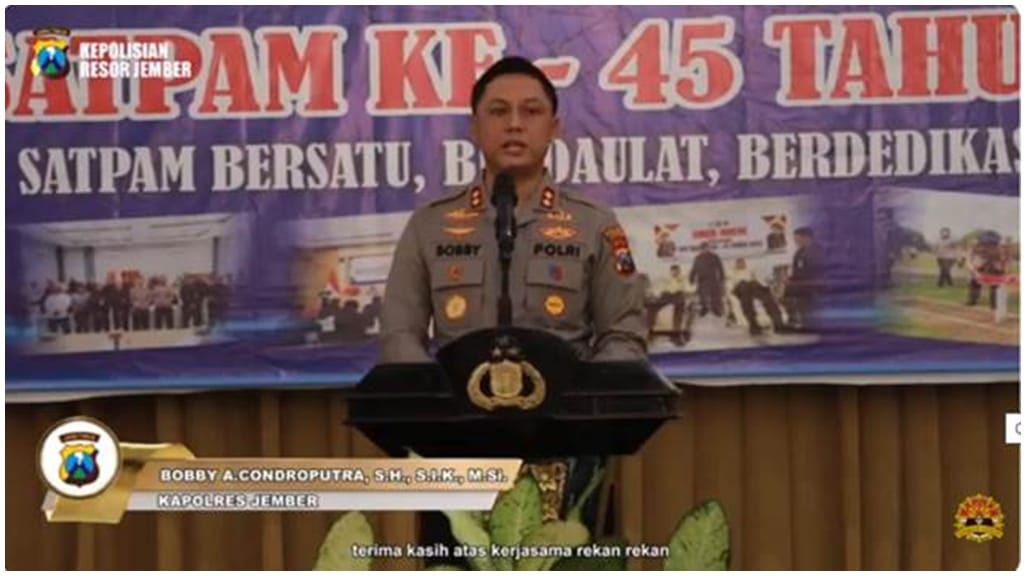 Kapolres Jember Bobby A. Condroputra S.H., S.I.K, M.SI., menyampaikan terima kasih atas Kerjasama para Satpam UNEJ dalam menjaga keamanan kabupaten Jember.