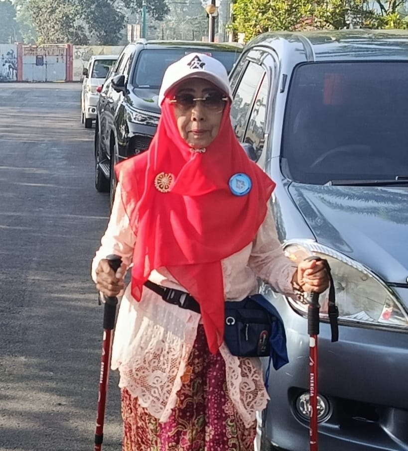 Di sisi bagian utara GOR Satria Purwokerto, terdengar musik lain yang tak kalah semangat. Sekelompok ibu-ibu dari komunitas Jalan Nordic tampak bergerak serempak, mengenakan kebaya lengkap sambil membawa tongkat khas Nordic Walking. Sementara itu, mengitari lintasan GOR, sejumlah ibu manula berjalan santai—juga dengan kebaya—menyatu dalam suasana pagi yang hangat.