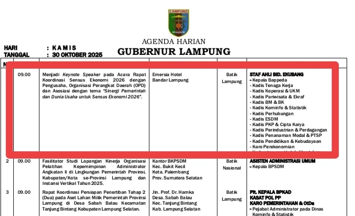 “Dengan kata lain, data ini dari Bapak Ibu, untuk Bapak Ibu, dan oleh Bapak Ibu. Kami optimistis dengan semangat kolaborasi semua pihak, Sensus Ekonomi 2026 di Lampung akan berjalan sukses dan berkontribusi terhadap terwujudnya visi ‘Bersama Lampung Maju Menuju Indonesia Emas’,” pungkasnya. (@Ng).