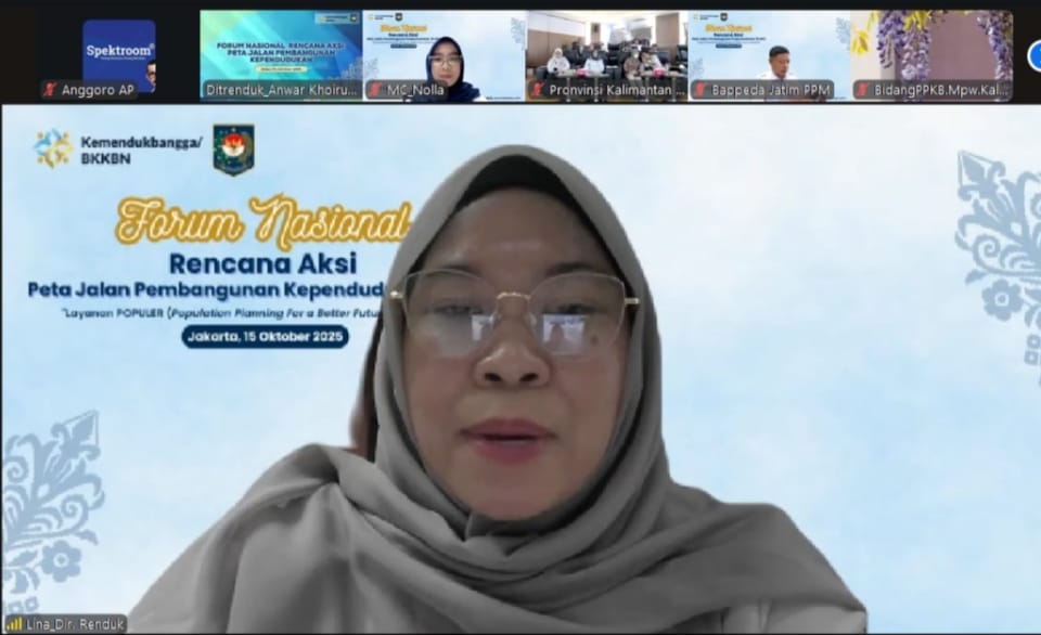 Hal itu disampaikan Direktur Perencanaan Pengendalian Penduduk Kementerian kependudukan dan pembangunan keluarga/BKKBN Lina Widiastuti pada Virtual Forum Nasional Rencana Aksi Peta Jalan Pembangunan Kependudukan (PJPK), Kemendukbangga/BKKBN, Rabu (15/10/2026).