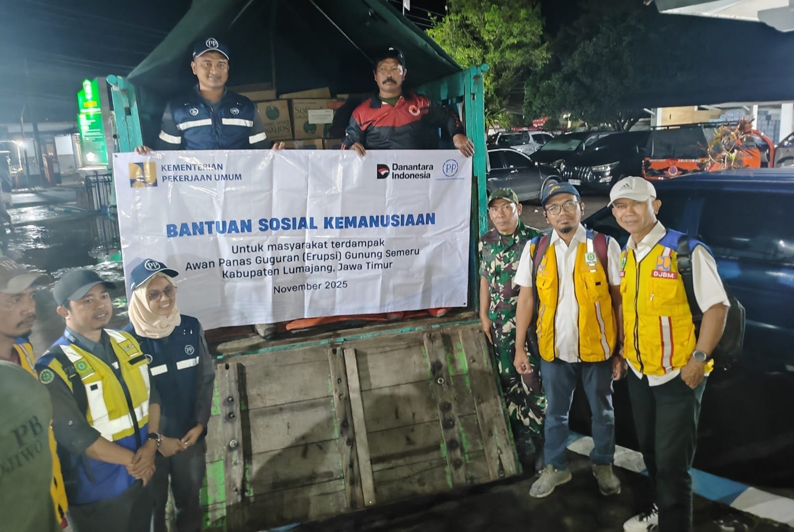 Spektroom – Kementerian Pekerjaan Umum (PU) menyalurkan Bantuan Sosial (Bansos) untuk memenuhi kebutuhan dasar masyarakat terdampak erupsi Gunung Semeru di wilayah Kabupaten Lumajang–Malang. Penyaluran dilakukan secara simbolis oleh Balai Besar Pelaksanaan Jalan Nasional (BBPJN) Jawa Timur–Bali di posko pengungsian Kantor Kecamatan Pronojiwo, Kabupaten Malang, Senin (24/11/2025).