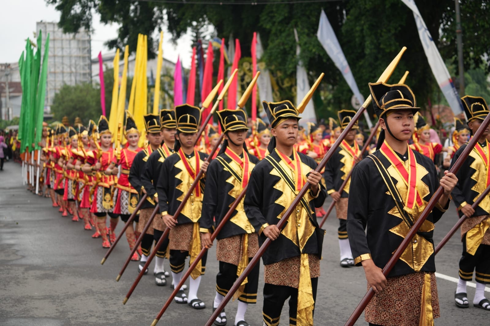 Para pembawa pusaka berjalan dengan tata cara kehormatan, mencerminkan penghormatan terhadap nilai sejarah dan tradisi leluhur.