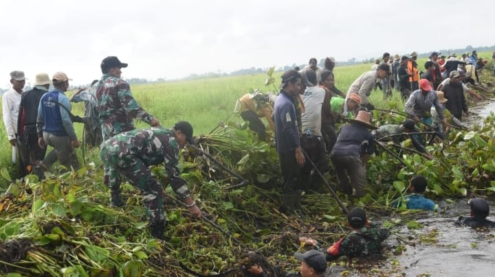 Selain membersihkan sampah dan rumput liar di bantaran sungai, para peserta juga mengangkut material yang dapat menghambat aliran air. Antusiasme masyarakat terlihat dari partisipasi aktif warga dalam kegiatan tersebut.
