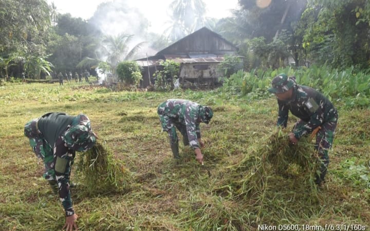 Kegiatan gotong royong ini dilakukan sebagai bentuk dukungan TNI terhadap program pembangunan ekonomi Masyarakat Desa yang digagas melalui pendirian Koperasi Merah Putih Desa.