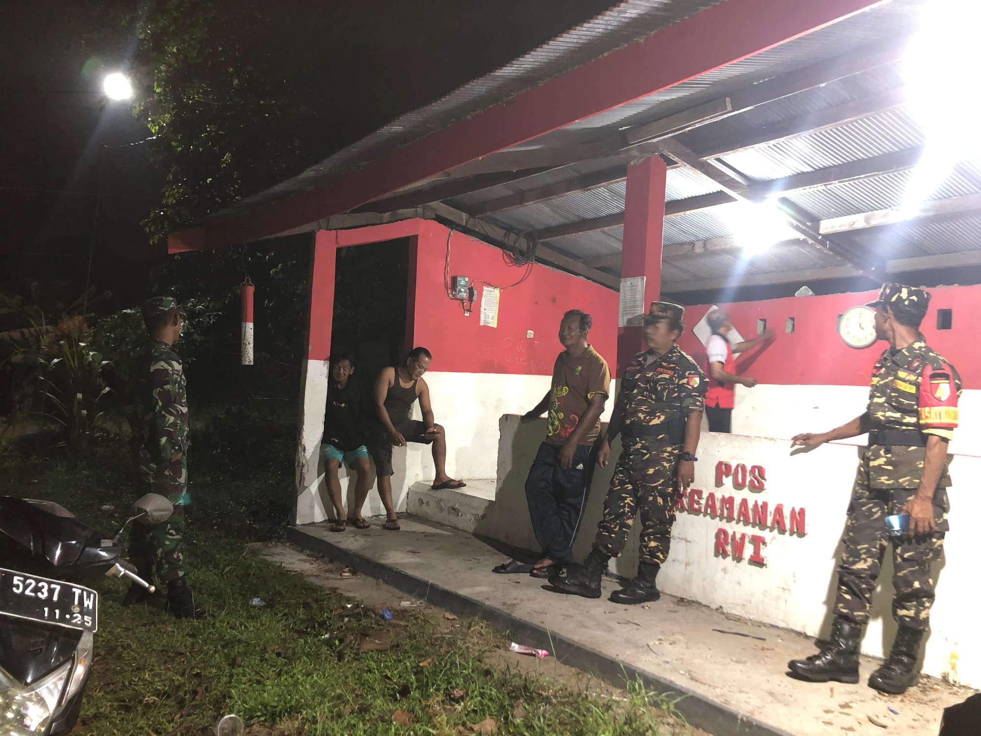 Patroli Gabungan terdiri Babinsa, Banser, dan Pemuda PSHT bersinergi menyisir Kalampangan, ciptakan rasa aman bagi warga.
