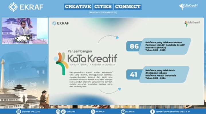 Hal itu disampaikan Deputi bidang Pengembangan Strategis Ekonomi Kreatif Kementerian Ekonomi Kreatif Cecep Rekendi, pada Creative Cities Connect 2025, Di Jakarta, Kamis 11 Desember 2025.