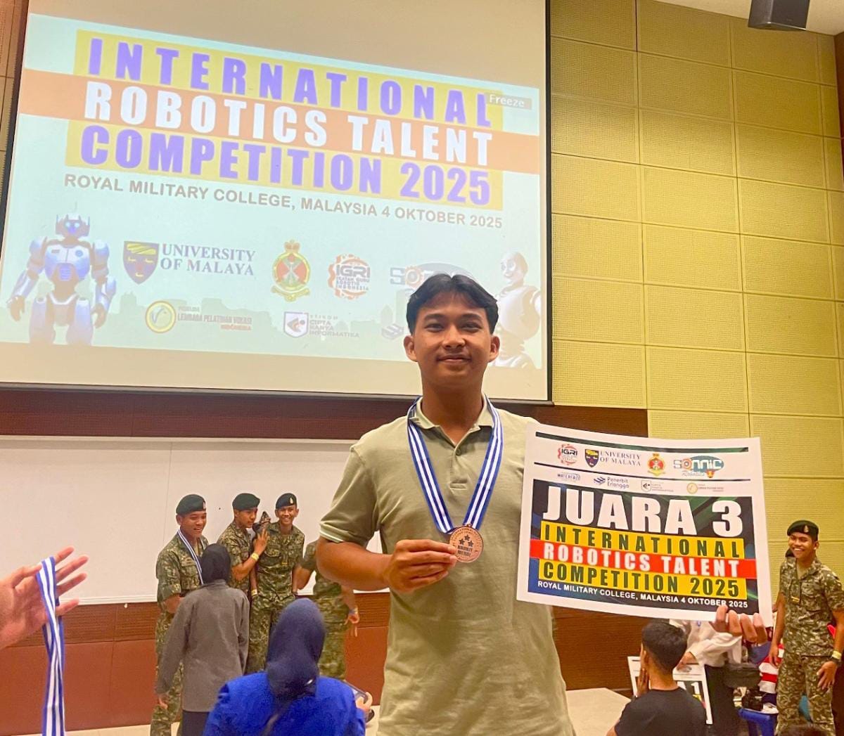 Spektroom — Prestasi membanggakan kembali datang dari MAN Kota Palangka Raya Plus Keterampilan. Muhammad Kaysan Naufal Ali, siswa kelas XII G, sukses meraih Juara III pada ajang International Robotics Talent Competition 2025 yang digelar di Royal Military College, Kuala Lumpur, Malaysia, Final Sabtu 4/10/2025.