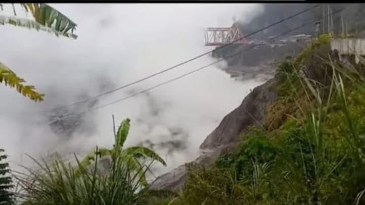 Kepulan asap mirip Awan Panas Guguran (APG) terpantau membumbung tinggi dari Desa Sumberwuluh, Kecamatan Candipuro, Kabupaten Lumajang, Jawa Timur, Jumat (21/11/2025) pukul 15.46 WIB. Awan panas berwarna putih kecoklatan yang cukup tebal membumbung tinggi dan menerjang Jembatan Gladak Perak.