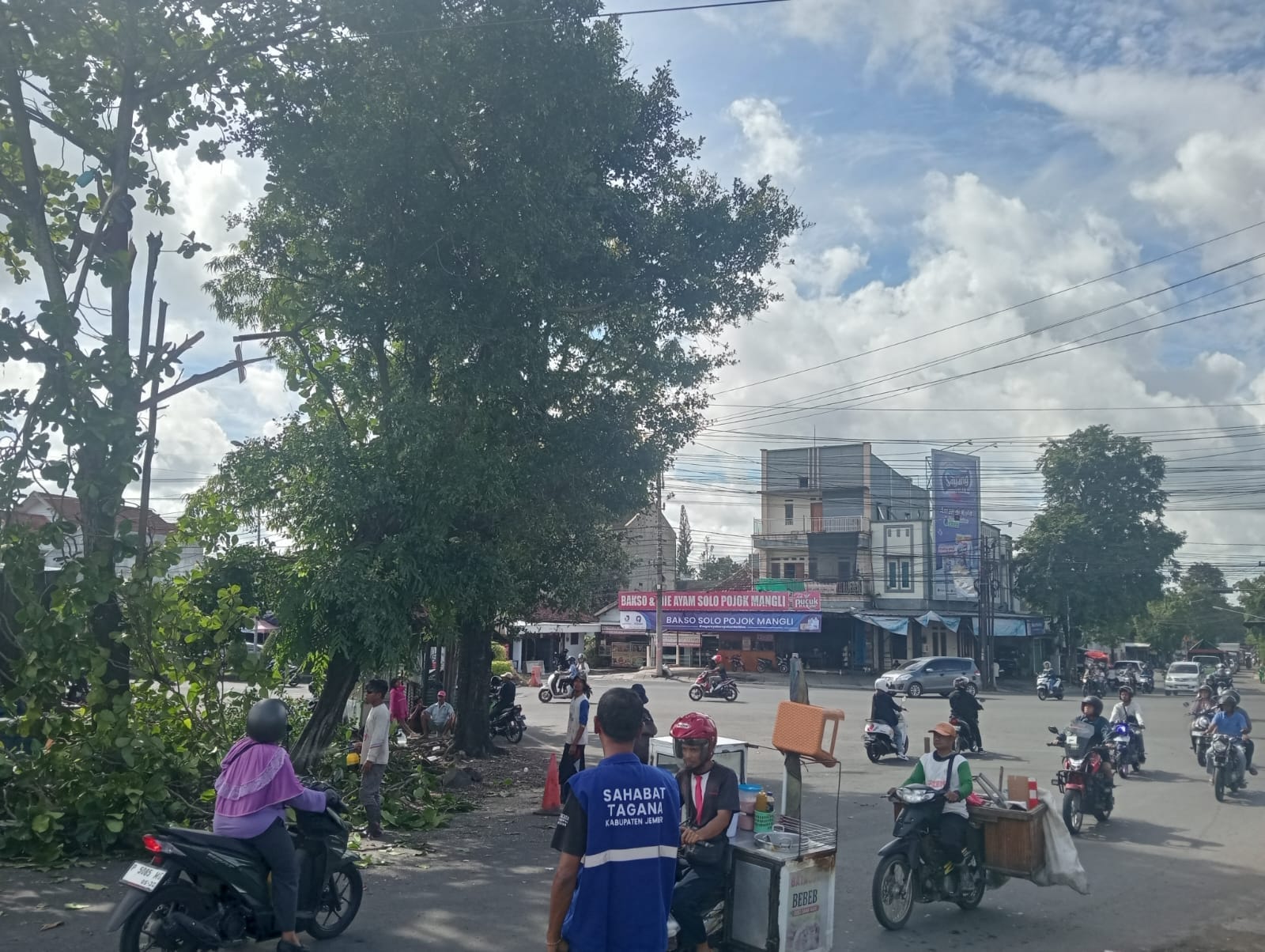 “Area ini menjadi prioritas utama penanganan mengingat volume lalu lintas yang padat, yang secara otomatis meningkatkan risiko dan dampak yang ditimbulkan apabila terjadi pohon tumbang mendadak,” jelasnya. “Sebelum pelaksanaan teknis di lapangan, BPBD Kabupaten Jember telah melakukan koordinasi mendalam dengan pihak Kelurahan Mangli,” tambahnya. Menurut Indra Tri Purnomo, koordinasi ini bertujuan untuk melakukan pendataan menyeluruh dan memetakan pohon-pohon yang cabangnya dinilai lapuk, terlalu rimbun, atau posisinya membahayakan instalasi listrik dan keselamatan publik. “Sinergi ini memastikan bahwa tindakan pemangkasan dilakukan pada titik-titik yang paling berpotensi menimbulkan kerawanan bencana,” jelasnya. “Di lokasi pemangkasan, suasana kerja sama tim terlihat sangat solid. Petugas operasional dari BPBD bekerja bersama-sama dengan relawan Taruna Siaga Bencana (TAGANA). Mereka saling mendukung dan membantu dalam memangkas ranting-ranting pohon menggunakan peralatan yang memadai,” ungkap Indra. Kehadiran perwakilan dari Kelurahan Mangli juga sangat penting untuk memastikan kelancaran teknis dan berkoordinasi langsung dengan aparat terkait, termasuk dalam pengaturan arus lalu lintas di sekitar perempatan Mangli selama proses pemangkasan berlangsung. Aksi cepat tanggap ini merupakan bagian dari komitmen berkelanjutan Pemerintah Kabupaten Jember untuk menciptakan lingkungan yang aman dan meminimalkan dampak buruk dari bencana alam. Dengan dilakukannya pemangkasan ini, potensi bahaya pohon tumbang di Kelurahan Mangli dan sekitarnya diharapkan dapat berkurang secara signifikan. “Pemerintah Kabupaten Jember mengimbau masyarakat agar senantiasa meningkatkan kewaspadaan terhadap perubahan cuaca ekstrem dan proaktif melaporkan kondisi pohon yang dinilai berisiko di lingkungannya kepada pihak berwenang,” pungkasnya. (Budi S).//