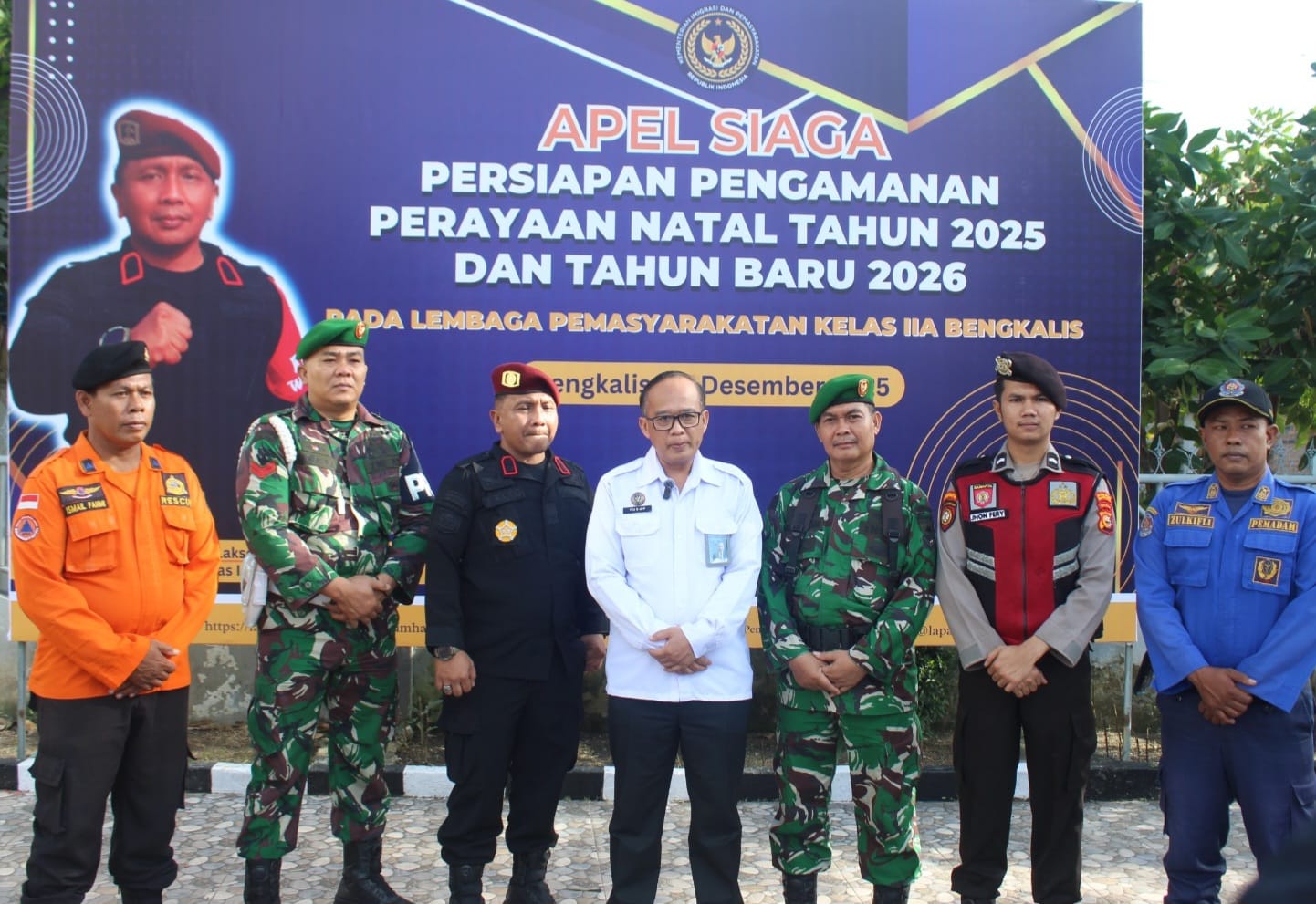 Spektroom – Dalam rangka memastikan keamanan dan ketertiban selama perayaan Natal Tahun 2025 dan Tahun Baru 2026, Lembaga Pemasyarakatan (Lapas) Kelas IIA Bengkalis menggelar Apel Siaga Pengamanan yang diikuti seluruh pegawai, bertempat di lapangan Lapas Kelas IIA Bengkalis Rabu, (24/12/2025).