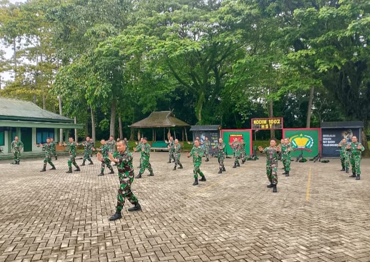Latihan Pencak Silat Militer, Kodim 1002/HST Tingkatkan Kemampuan Bela Diri dan Fisik Prajurit