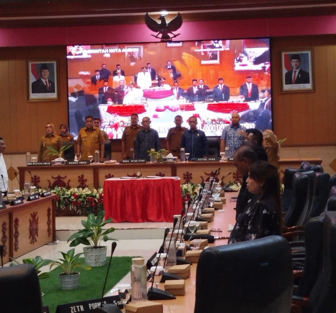 Ambon-Spektroom: Wali Kota Ambon Bodewin Wattimena bersama Wakil Wali Kota Ely Toisutta menyerahkan Laporan Keterangan Pertanggungjawaban (LKP) Tahun Anggaran 2025 kepada DPRD Kota Ambon dalam rapat paripurna, Selasa (31/3/2026).