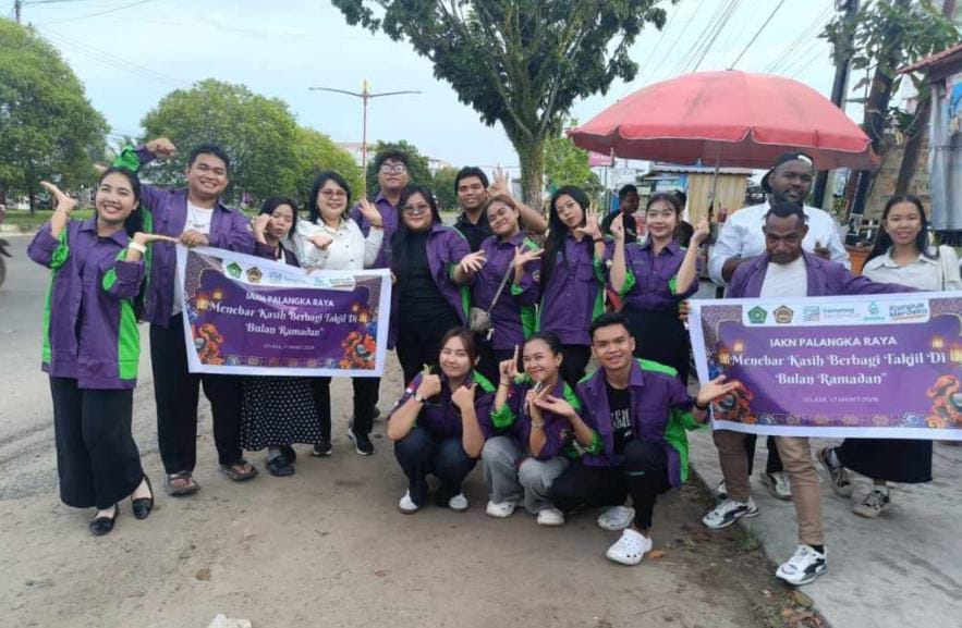 Palangka Raya-Spektroom : Sore itu, lalu lintas di Jalan RTA Milono Km 6 tak hanya dipenuhi kendaraan yang bergegas pulang. Di depan kampus Institut Agama Kristen Negeri (IAKN) Palangka Raya, suasana berubah akrab. Sejumlah mahasiswa berdiri di tepi jalan, menyapa pengguna jalan sambil membagikan takjil sebuah gestur sederhana, tapi sarat makna.
