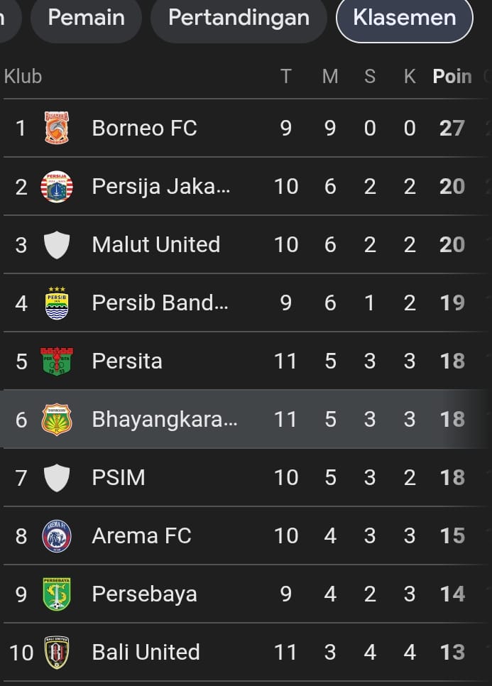 Sementara Bali United merosot ke posisi 10 meraih poin 14 dari 9 kali Main 4 menang, 2 seri dan 3 kali kalah, dibawah Persebaya diposisi 9 dengan poin 14, dari 9 kali main, 4 menang, 2 seri dan 3 kali kalah.(@Ng)