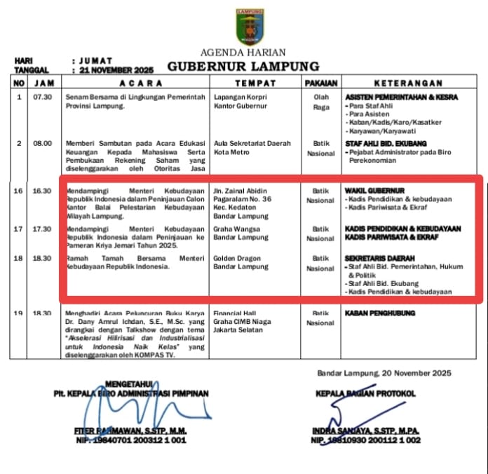 “Kami berharap balai pelestarian kebudayaan ini menjadi bagian penting dalam pelindungan, pengembangan, dan pemanfaatan budaya Lampung. Mulai dari situs peninggalan sejarah hingga seni kontemporer, termasuk budaya digital, musik, film, dan seni tradisional,” ujar Fadli Zon.(@Ng).
