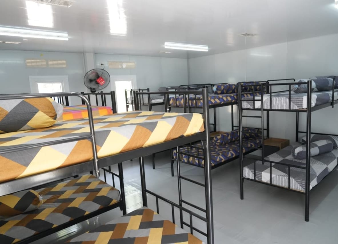 Hunian dibangun dengan konsep modular guna mendukung kecepatan pelaksanaan serta efisiensi konstruksi, sekaligus memastikan standar kelayakan dan keselamatan bagi personel yang bertugas.