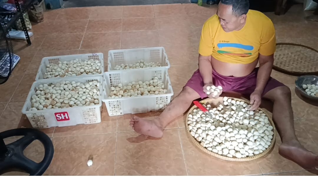 Setelah matang, kue-kue tersebut dilepas dari dinding gentong menggunakan alat khusus, lalu disortir sebelum akhirnya dikemas dan siap dipasarkan. Dalam sehari, Rini mengaku mampu memproduksi hingga satu kwintal Mino untuk memenuhi pesanan pedagang dari berbagai daerah, seperti Jakarta, Bali, Semarang, Yogyakarta, dan kota-kota lain di Pulau Jawa.