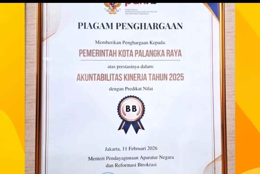Spektroom - Pemerintah Kota Palangka Raya kembali dicatat kategori capaian nasional. Dalam Evaluasi Sistem Akuntabilitas Kinerja Instansi Pemerintah (SAKIP) Tahun 2025, Pemko meraih predikat BB (Sangat Baik). Di saat yang sama, DPMPTSP Kota Palangka Raya sukses menyabet penghargaan Zona Integritas menuju Wilayah Bebas dari Korupsi (WBK).